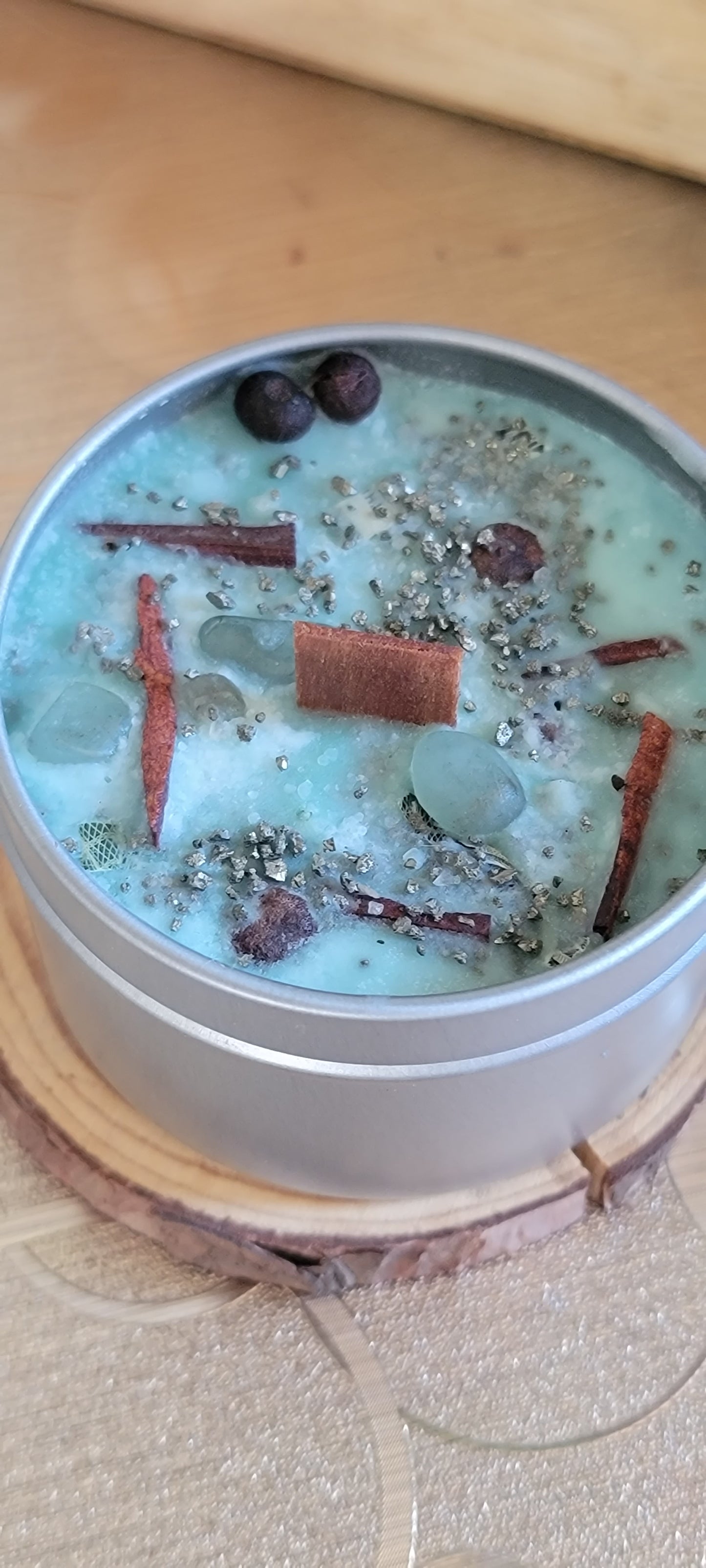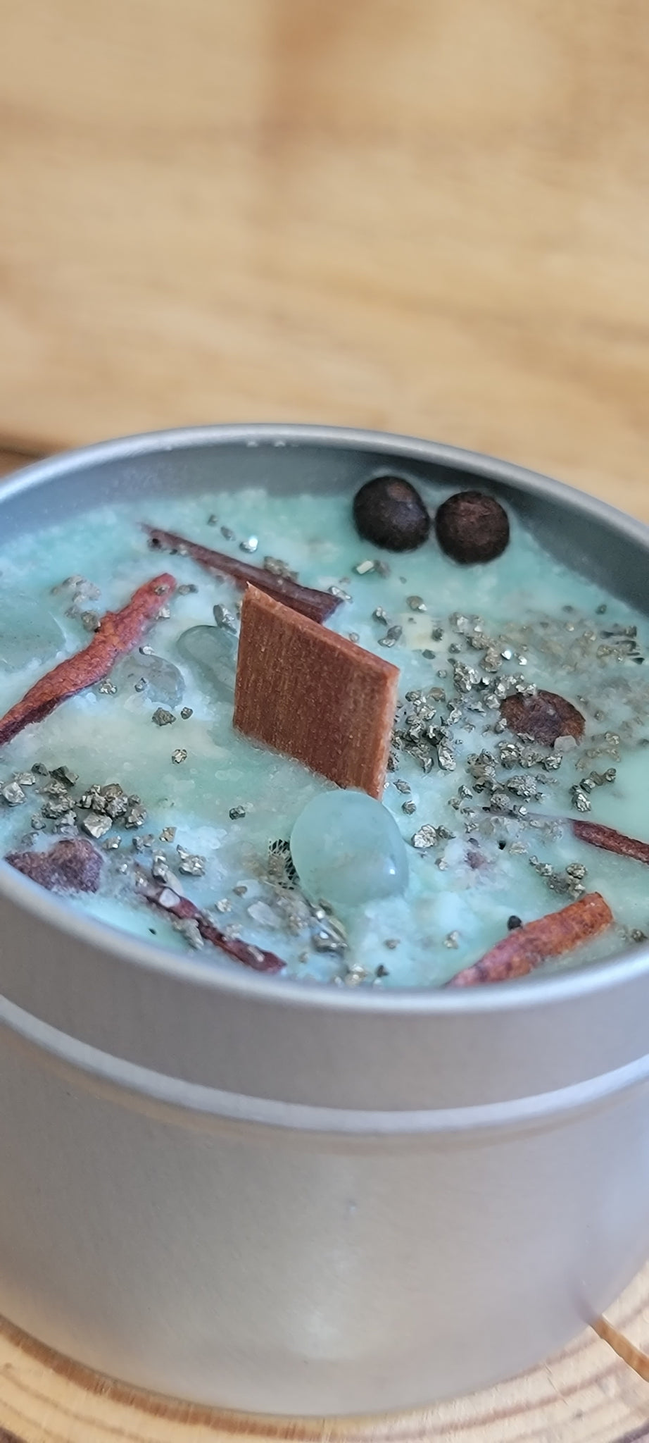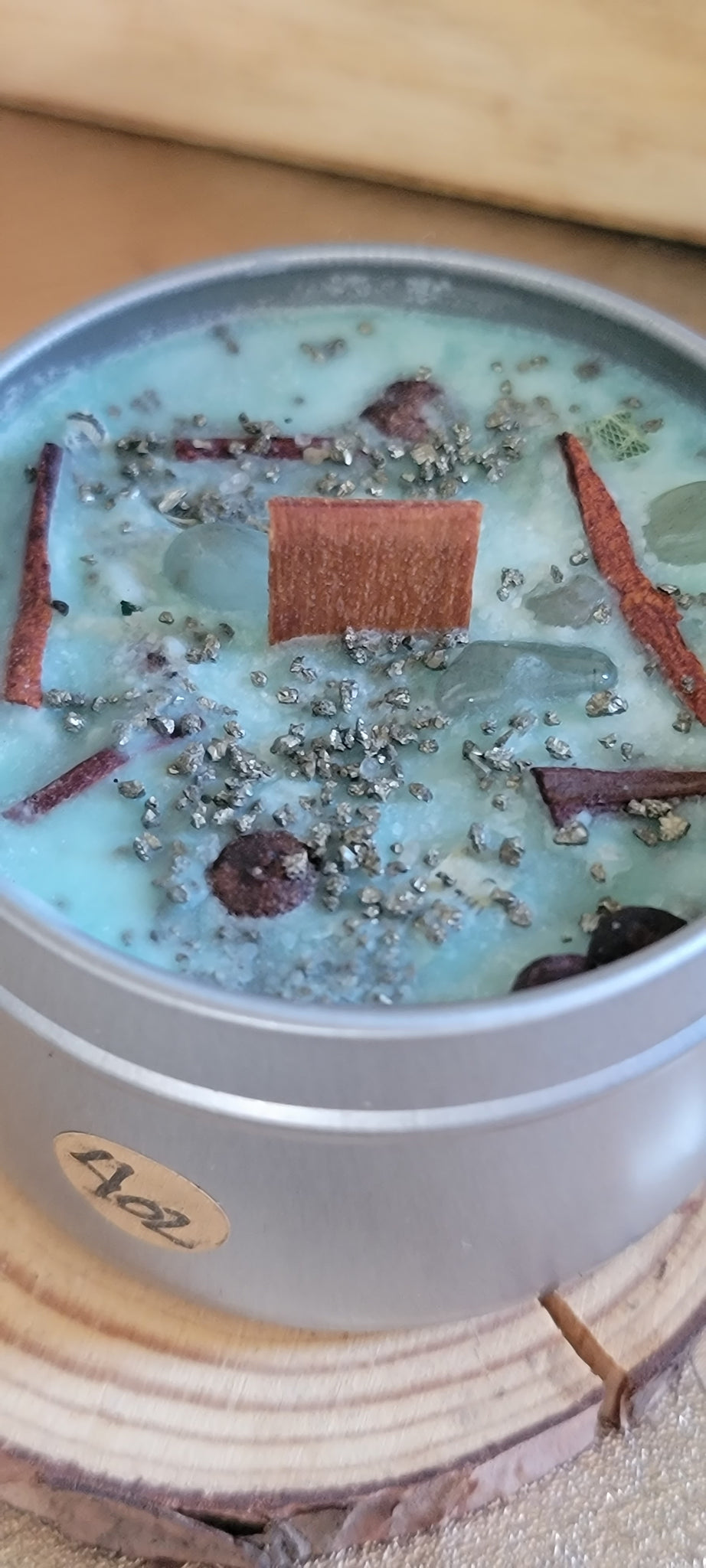 A money drawing candle is used for manifestation and setting a positive intention for financial abundance and drawing money into the home or business. This candle is filled with Green Aventurine, Clove, Cinnamon and Pyrite. These crystals help in attracting money and prosperity. Once your candle has burned all the way down you may remove the crystals and wash them off and keep them. The crystals are often used in rituals or meditations focused on attracting prosperity and abundance. It is important to note that while intention candles can be a helpful tool for setting a positive mindset and focusing on one's goals, they are not a guarantee of financial success and should not be relied upon as the sole means of improving one's financial situation. Candle has over 30 hours in burn time.